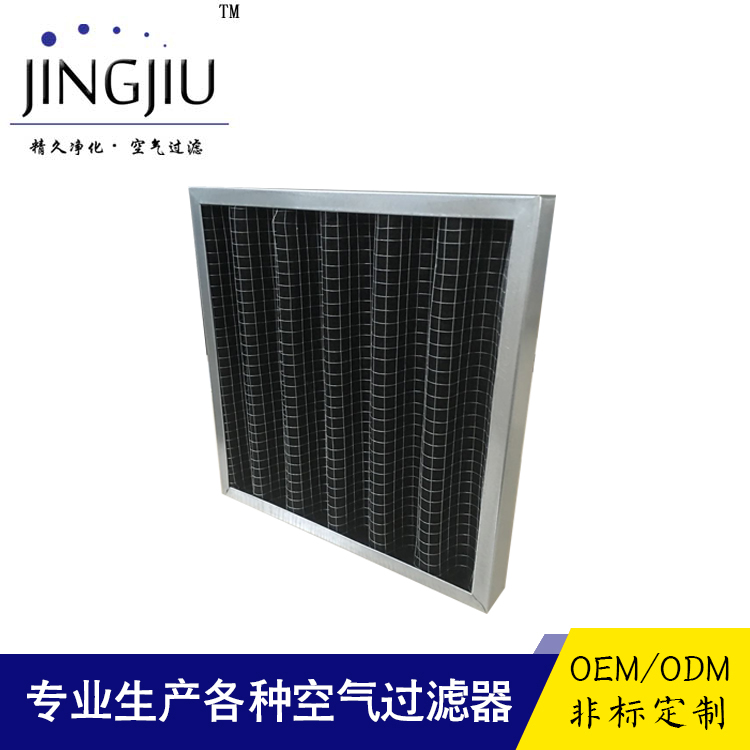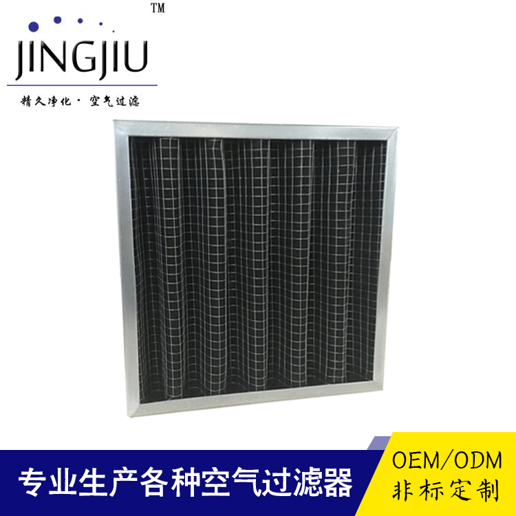活性炭空氣過濾器 活性炭過濾器通過比較過濾器中活性炭材料的多少可以粗略估計(jì)過濾器的 能力。例如,一只迎風(fēng)面為610mmx610mm過濾器中含30kg最 普通的顆?;钚蕴?另一只所謂高科技新產(chǎn)品中含2kg活性炭, 那個(gè)新產(chǎn)品的活性炭可能比顆粒炭的單位吸附容量大許多,但它 的使用壽命也就是那只普通顆粒炭過濾器的十分之通過監(jiān)測過濾器前后污染物的濃度變化,可以判定活性炭是否應(yīng)更換。但目前國內(nèi)尚無實(shí)用、方便的監(jiān)測手段,因此,用戶只能按規(guī)定周期或憑經(jīng)驗(yàn)決定活性炭過濾器的使用壽命。